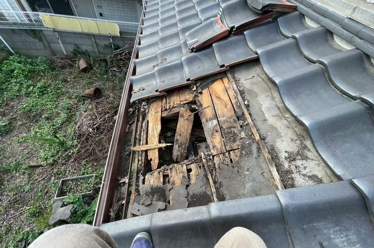 屋根のはがれた箇所、下地の状態を点検します。