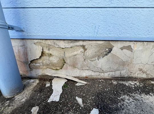 2024/06/28今回は基礎塗装と、雨樋交換のご紹介です! まずは、基礎塗装から♪ 基礎は状態も悪くコケや水漏れ跡などがありました。。 -