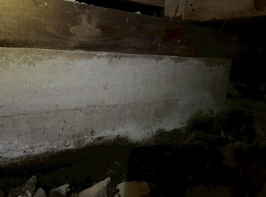 2026/02/22築50年 床下を確認すると、**基礎のひび割れやエフロ(白華現象)**が見られたため、ソリッドリメインを使用したハイブリッド工法で基礎補修を行いました。 -