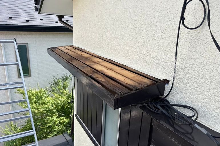 外壁の付帯部分にあたる庇が何箇所かパカパカな状態で中の木材が腐食していました。