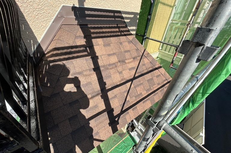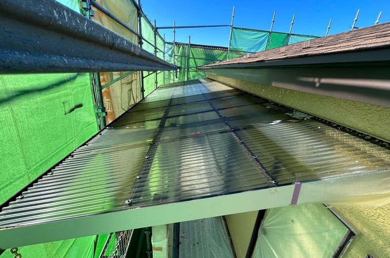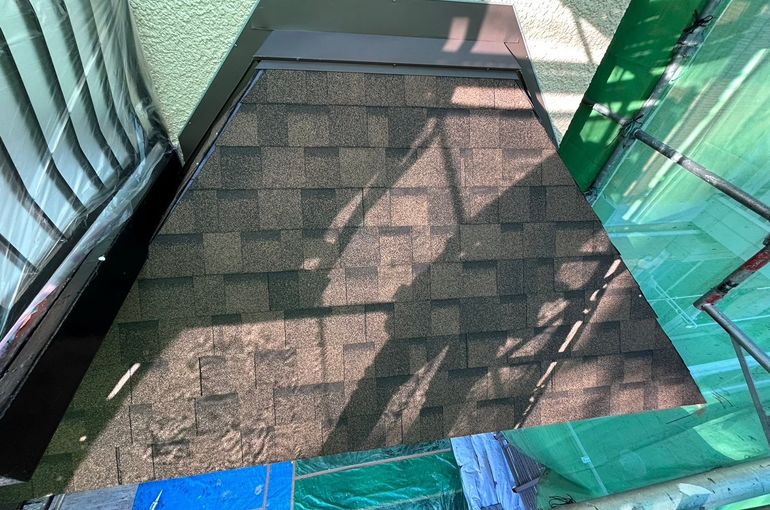既存の屋根はそのまま、上からルーフィングを張り、屋根材を取り付けました。