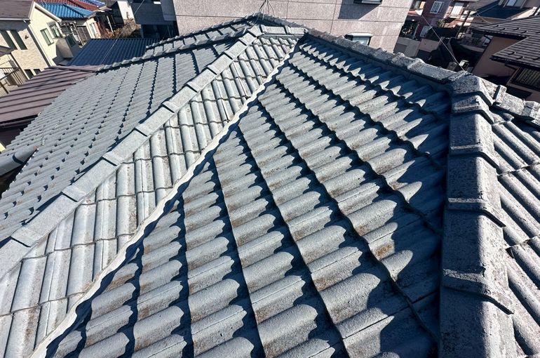 瓦屋根に塗装をしていて、瓦同士が塗膜で密着しており全く水の逃げ場がなく湿気も溜まっている状況でした。