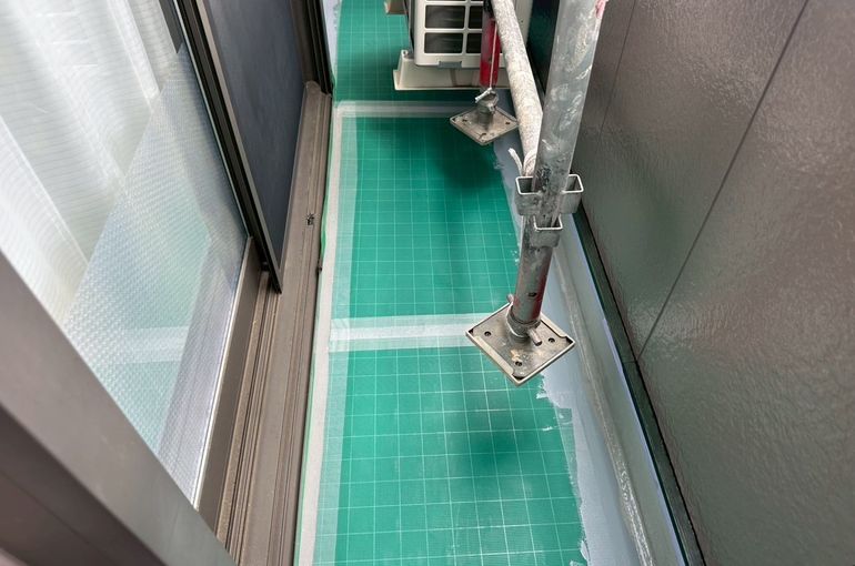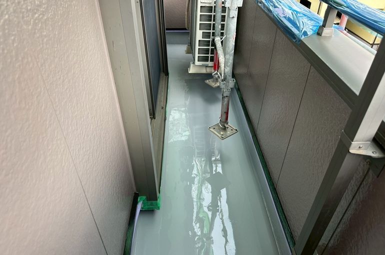 表面塗膜が剥がれており下地が見えてきている状態だったため、ベランダ防水を行いました!