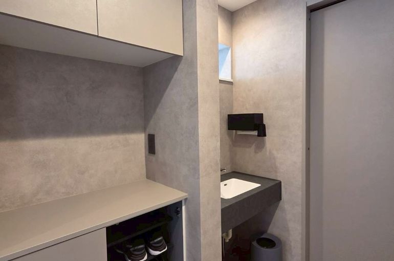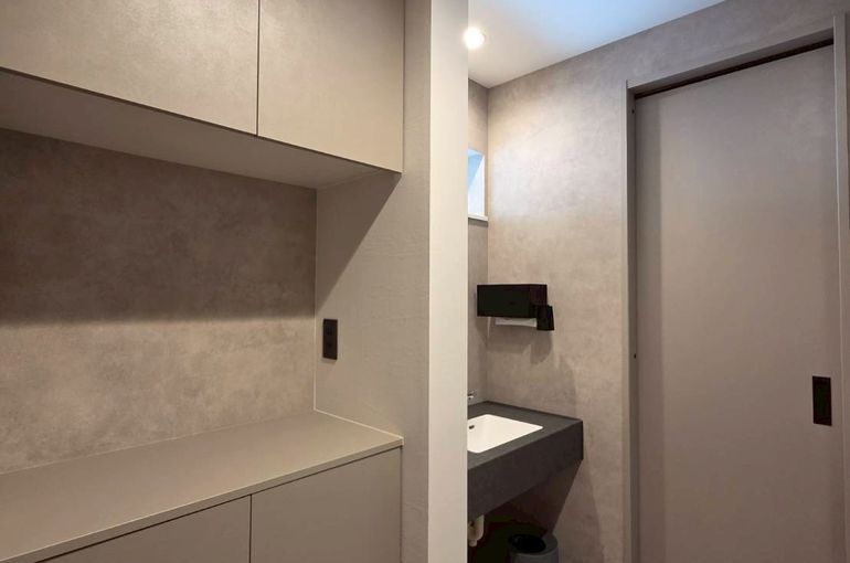 全体的にグレーでくどくなっているので部分的に張り替えることによって明るくしたいとのことだったので、部分的にサンゲツのSPシリーズを使用してクロスを張り替えました!