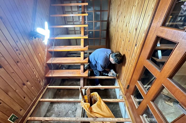 既存のフローリングを剥がし、下地補強を入れてからベニヤ板を取り付け!