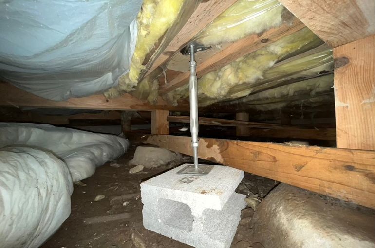 ベコベコしてるところは束石とジャッキで床下から補強しました!