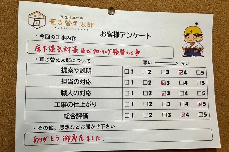 床のベコベコが数箇所ありチラシをみて問い合わせがありました!