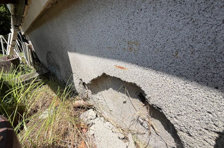 外の基礎が大きくひび割れてたり剥がれて致していました。。