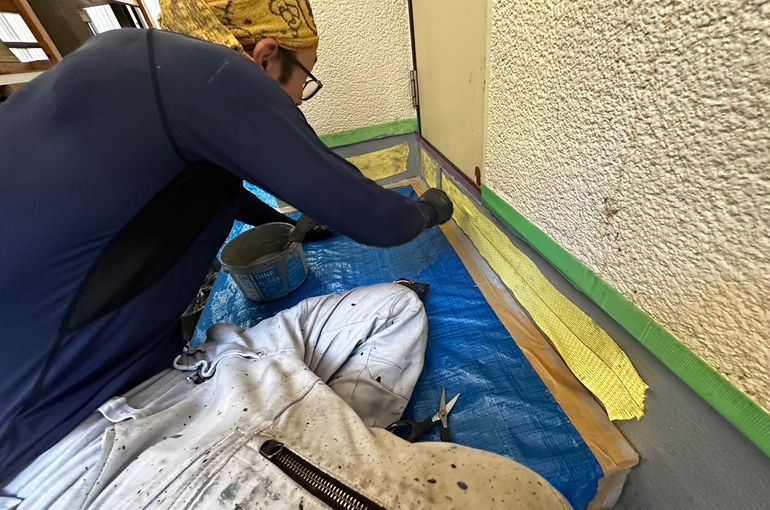基礎が剥がれてる部分やクラックにパテ埋めをしました!