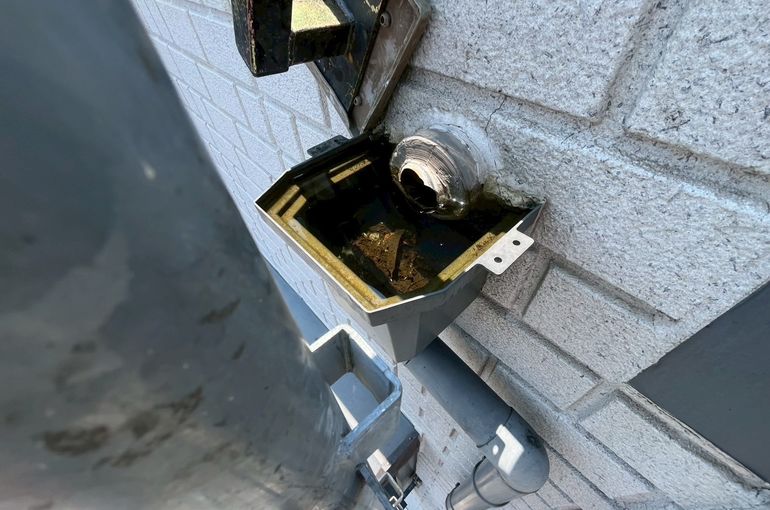 屋上から出でる集水器が詰まっていて溢れてると問い合わせがありました。