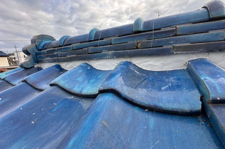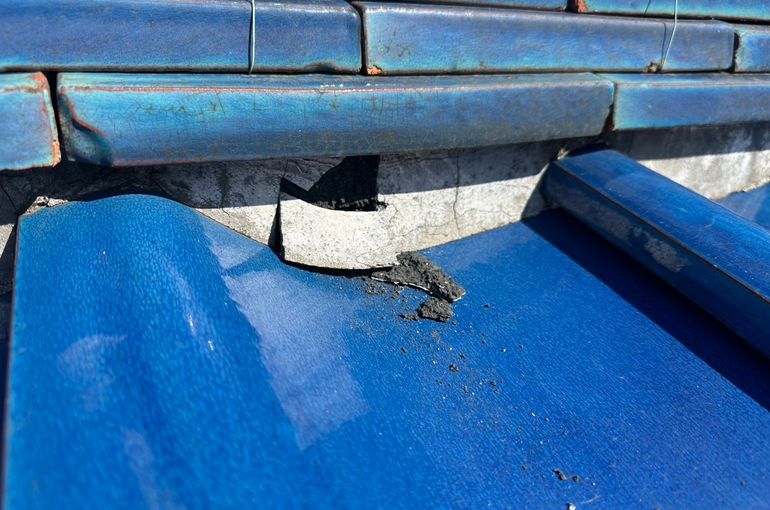 点検しすると屋根は瓦屋根で漆喰や銅線が劣化により剥がれていたり、切れていたりしていました!
