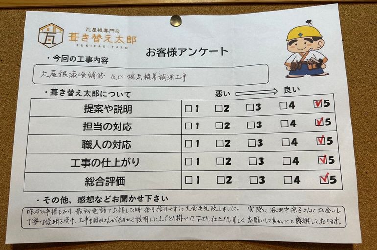 住んでから一度も屋根のメンテナンスをしていないとの事でした。