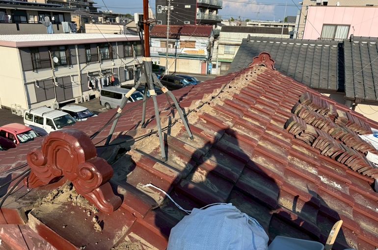 鬼瓦が傾いてて落ちそうで、どのように対応したら良いかとお問い合わせいただきました!