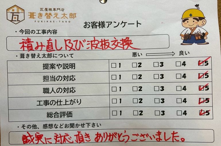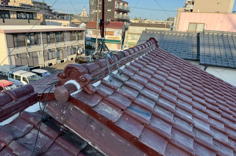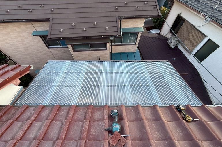 川崎市 川崎区 Y様邸 瓦屋根 棟瓦 積み直し モルロック バルコニー 波板交換