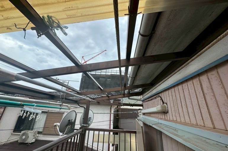 その他にはバルコニーの波板屋根が強風で飛んでしまって無くなっていたので、、、