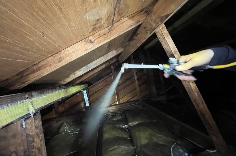 木部の防腐防カビの効果もあり防蟻(白アリ)対策にもなる消毒薬を散布しました!