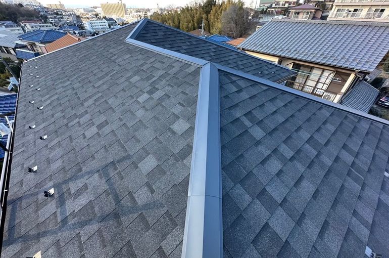 横浜市 緑区 T様邸 葺き替えリッジウェイ 雨樋交換 アイアン丸 外壁・擁壁塗装 水性セラミシリコン①