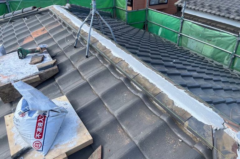 その後瓦を戻して漆喰で土台を形成!
