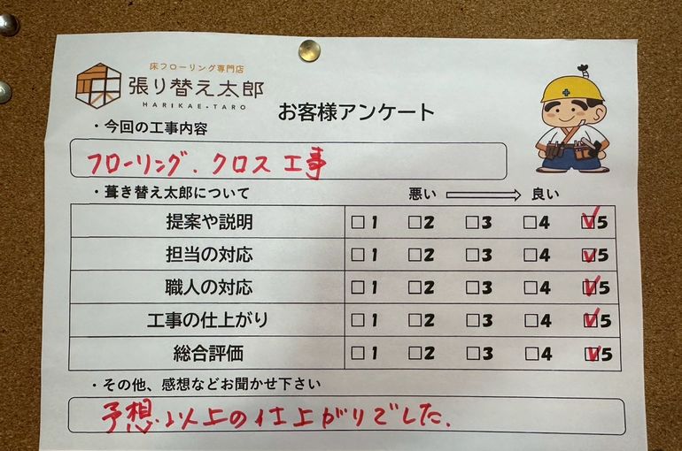 クロス張り替えを希望して某大手ハウスメーカーに見積もり依頼したが高額だったため、弊社HPを見てお問い合わせいただきました!
