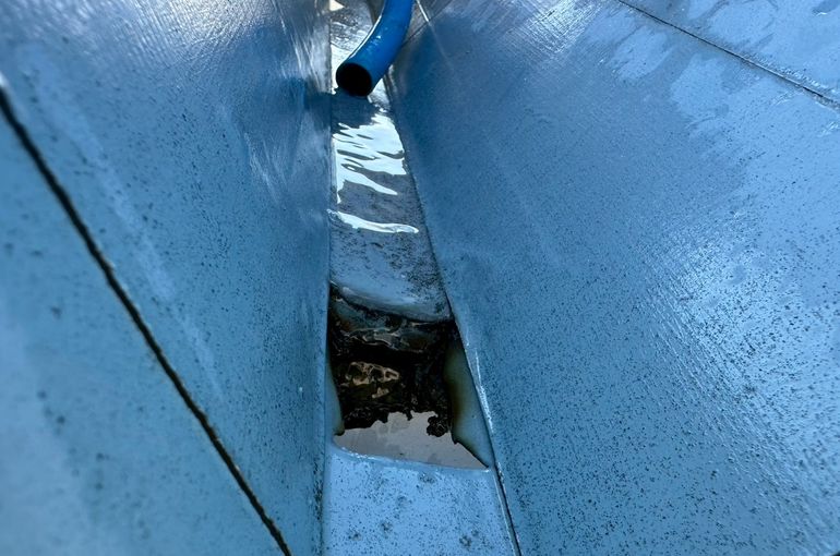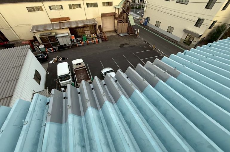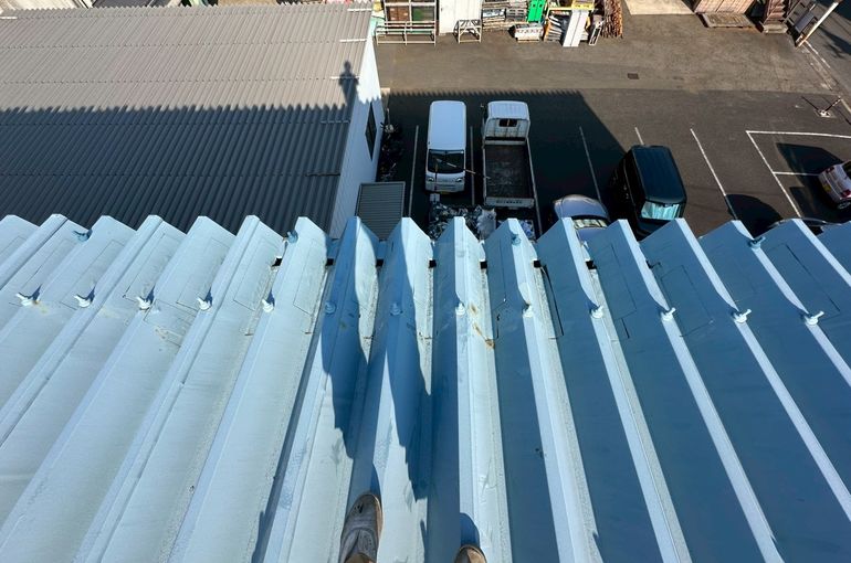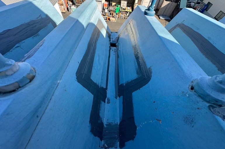 確認すると折半屋根にクラックや錆で穴が空いており、それが原因で雨漏りしていました。。